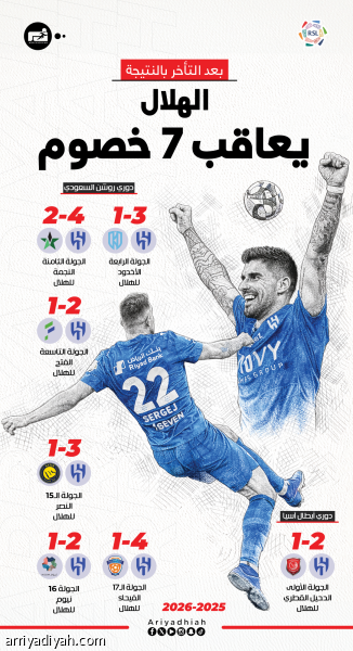 بعد التأخر بالنتيجة.. الهلال يعاقب 7 خصوم